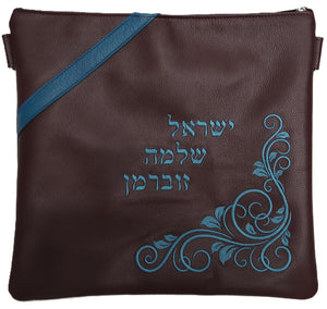 Classic Leather Tallis and Teffilin Bag Double Swirl Elegant design