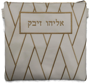 Tallis and Tefillin bag with modern cuts and name on center strip