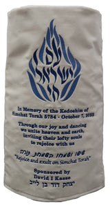 Torah Mantel with AM Yisroel Chai flame design.
