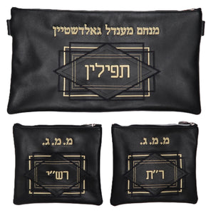 Contemporary Leather Chabad Bar Mitzvah Set Bag Angle design with tefillin logo