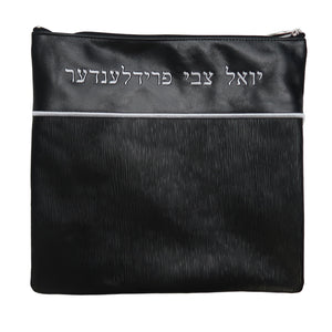 Name on bottom with embroidery piping leather Tallis and Tefillin bag